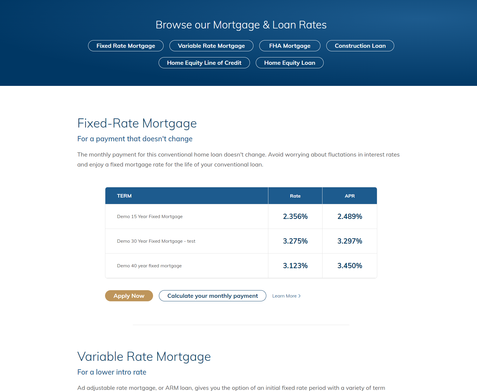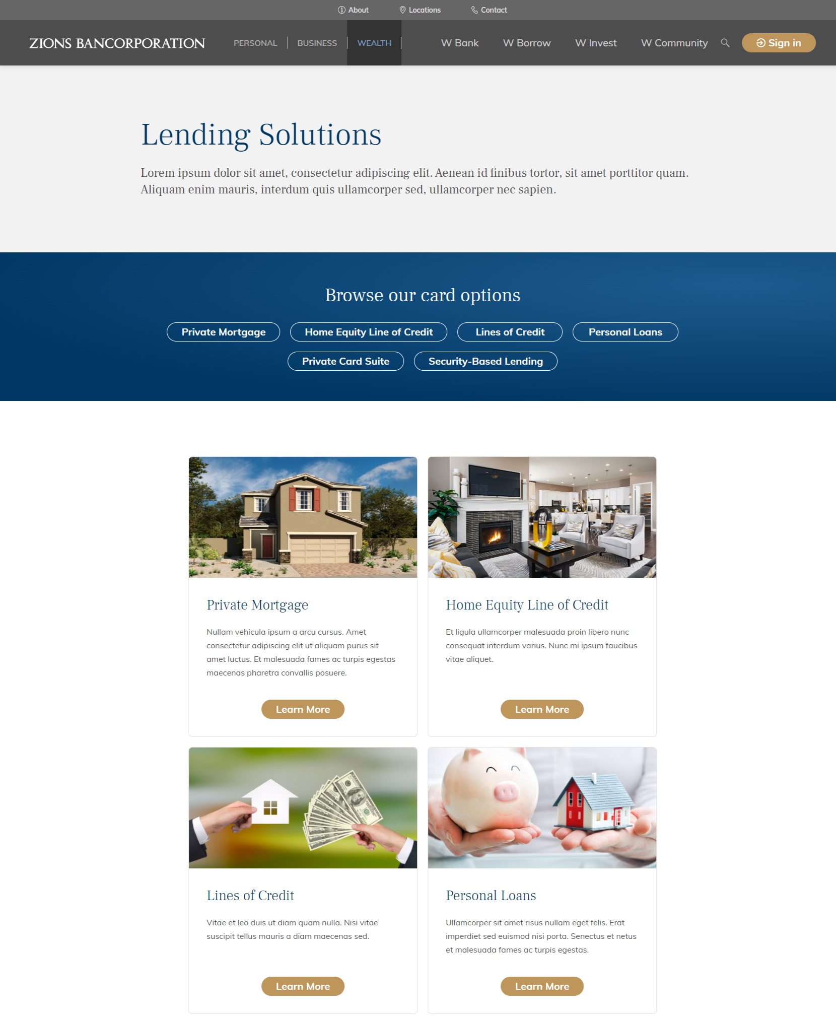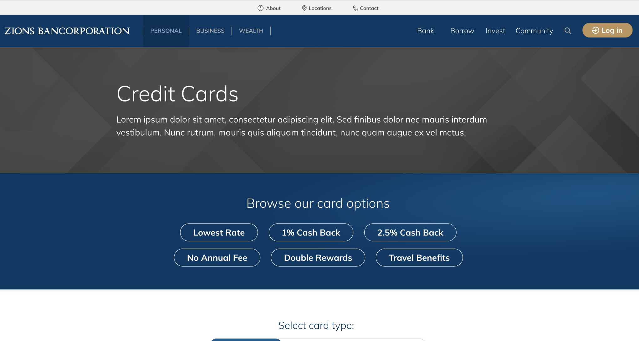 New Credit Card page that highlights the credit card options available to our customers
